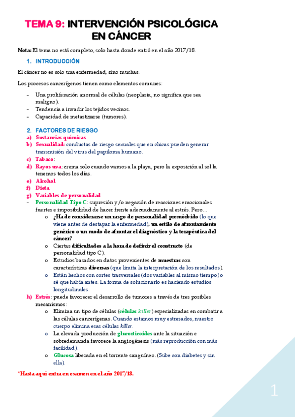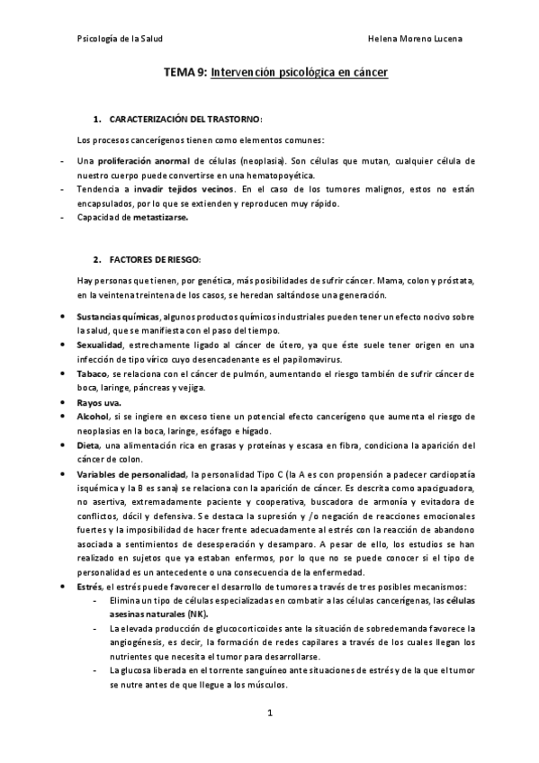 He publicado nuevos apuntes de 3º Psicología de la Salud: Tema 9- Intervención psicológica en cáncer.pdf