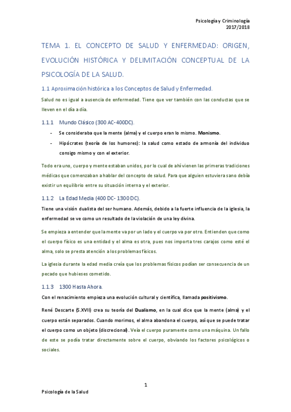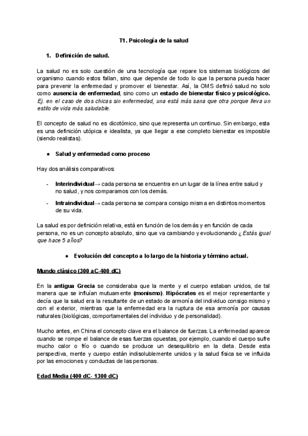 He publicado nuevos apuntes de 3º Psicología de la Salud: Tema 1-El concepto de salud y enfermedad.pdf