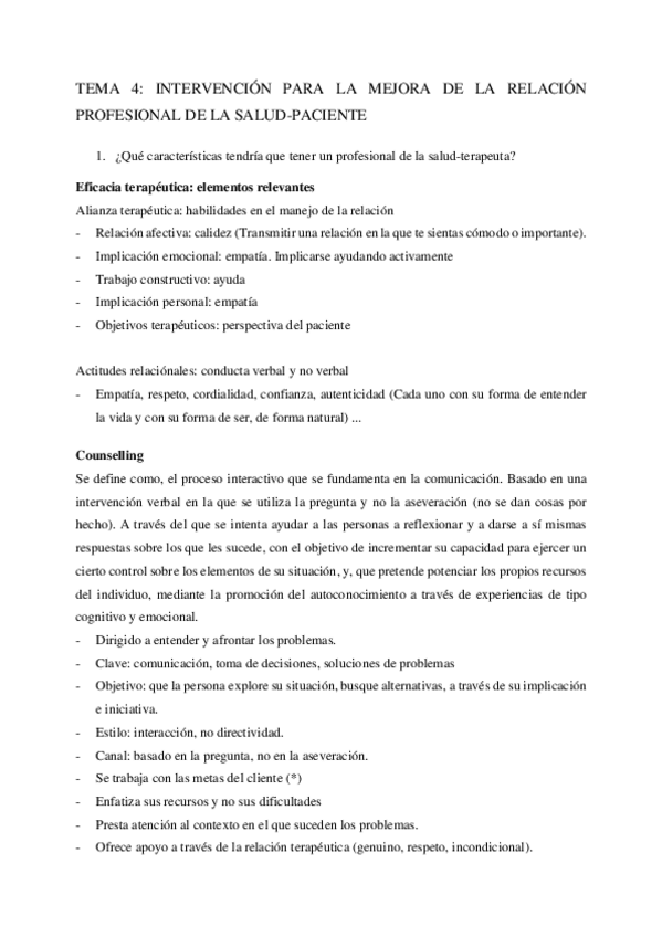 He publicado nuevos apuntes de 3º Psicología de la Salud: Tema 4 - Intervención para la mejora de la relación profesional-paciente.pdf