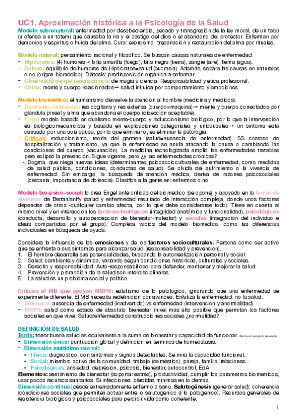 Resumen de la UC2 de Psicología de la Salud. Edición abril 2025 PLAN NUEVO :)