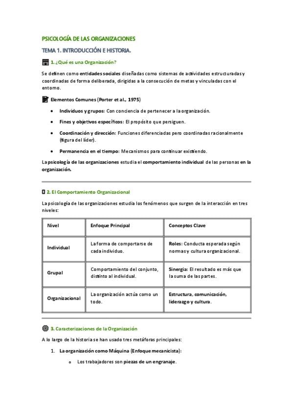Psicología de las organizaciones grupo inglés/grupo bilingüe. Temario primer parcial