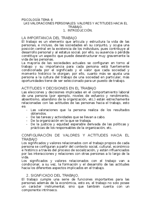 Psicología de las organizaciones y del trabajo del tema 1 al 6
