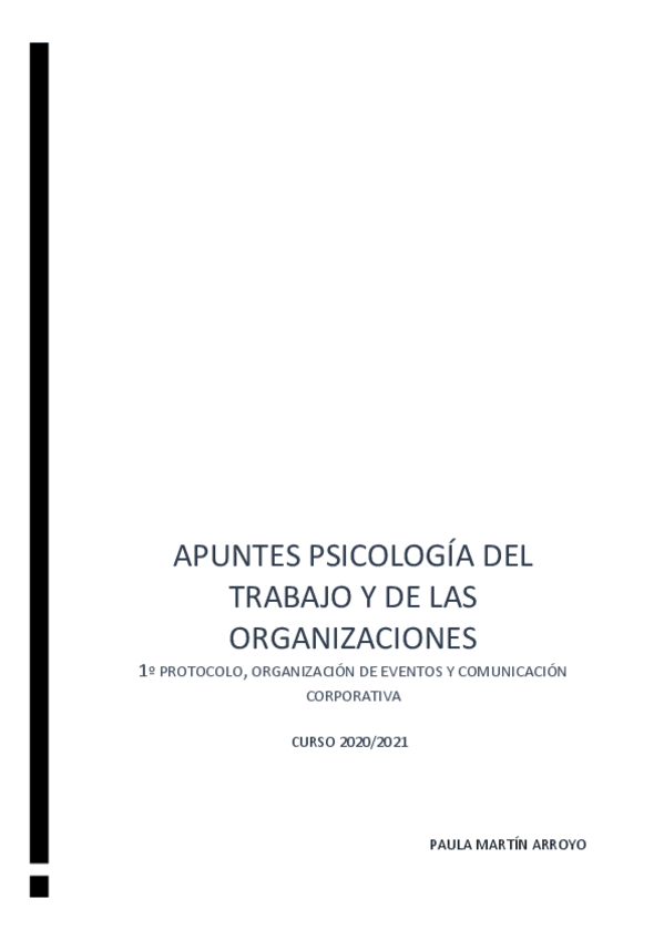 APUNTES PSICOLOGÍA DE LAS ORANIZACIONES Y EL TRABAJO