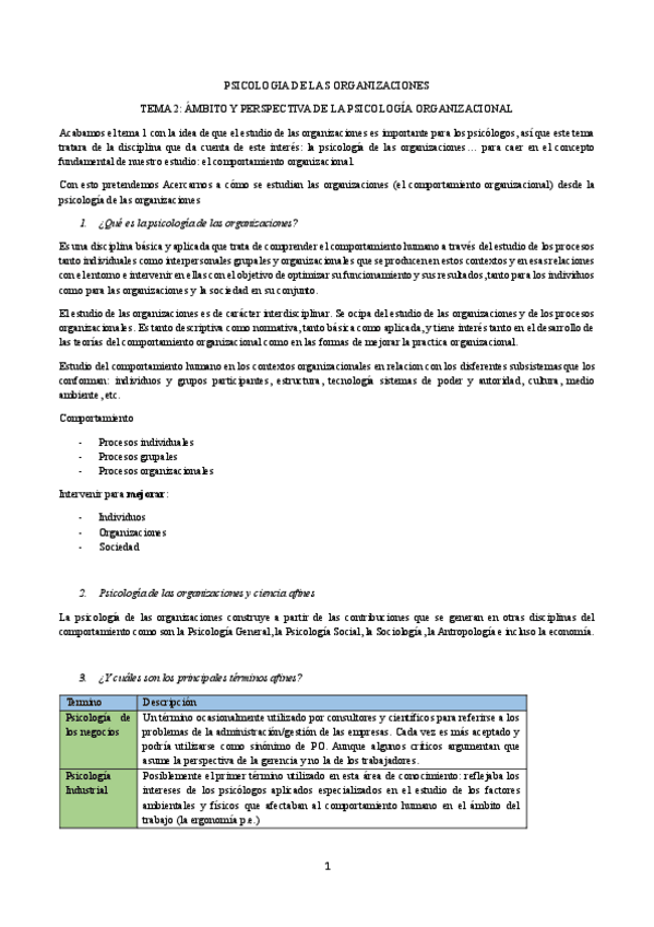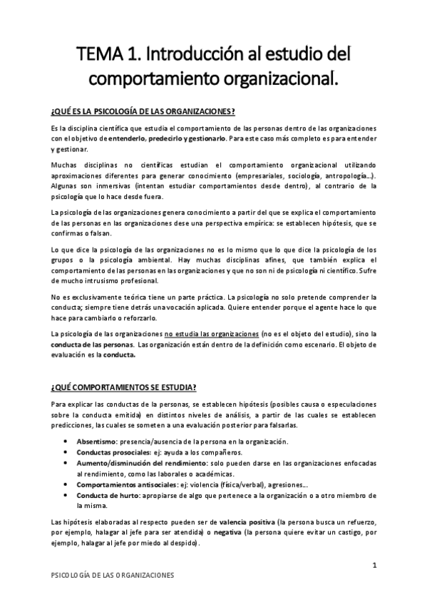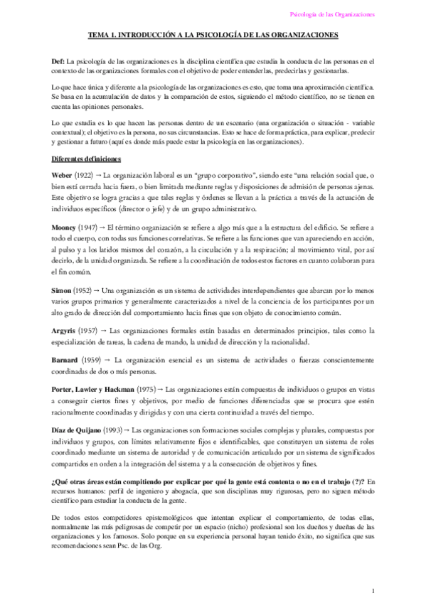 Psicología de las Organizaciones (T1-T7)
