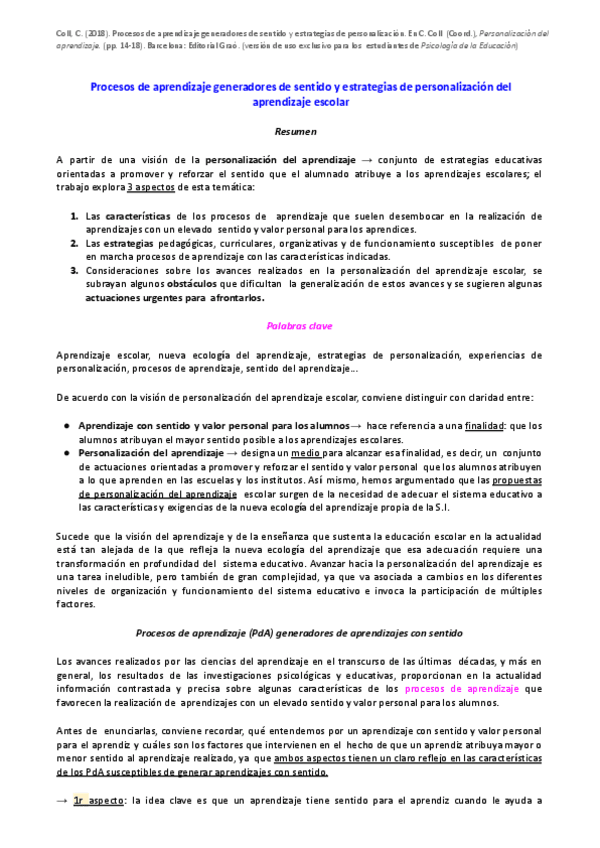 He publicado nuevos apuntes de 1º Psicologia de l’Educació a l’Etapa de Primària: Pauta-lectura-Coll-2018.pdf