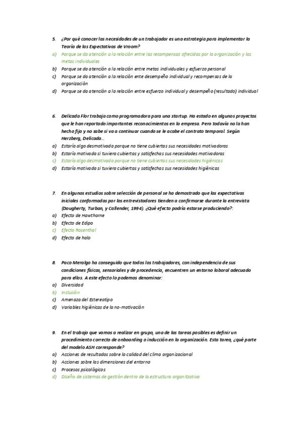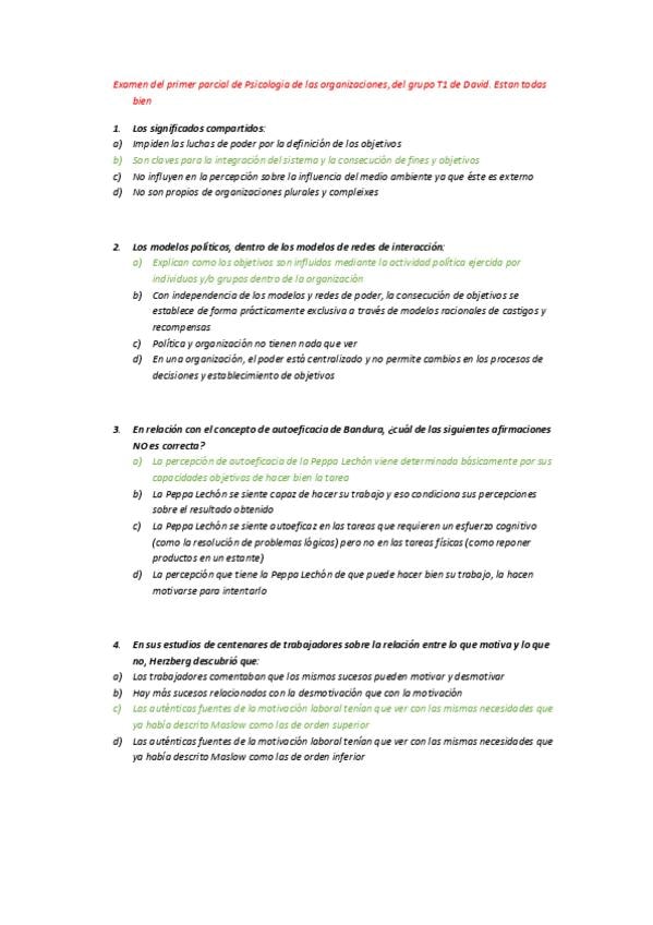 Examen de Psicologia de las Organizaciónes con respuestas correctas. Primer parcial