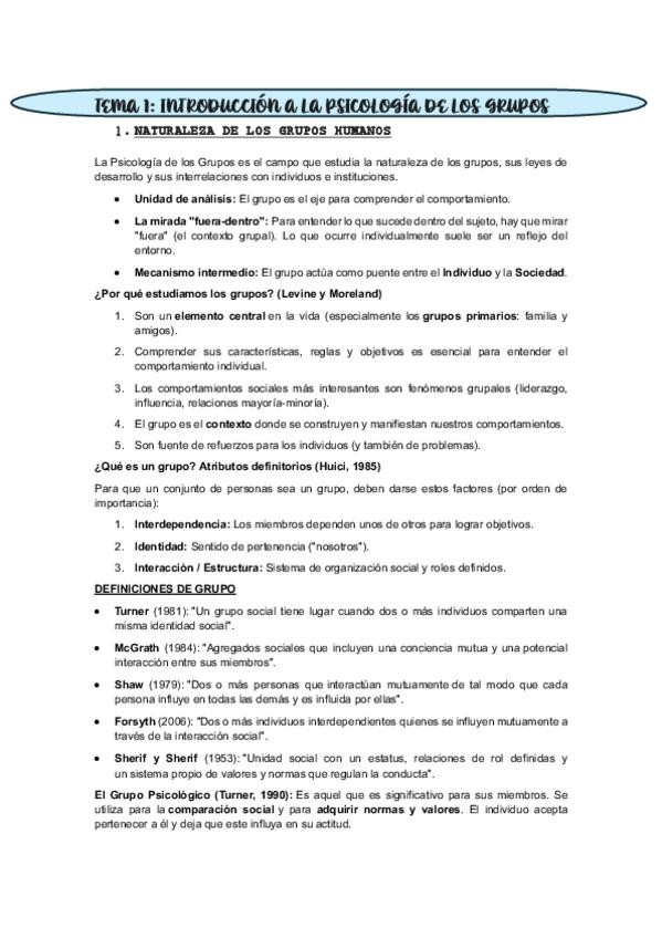 Hola! Acabo de subir una carpeta con apuntes completos de Psicología de los Grupos (Grupo 460). Incluye T1–T5, elaborados a partir del libro y de las clases.