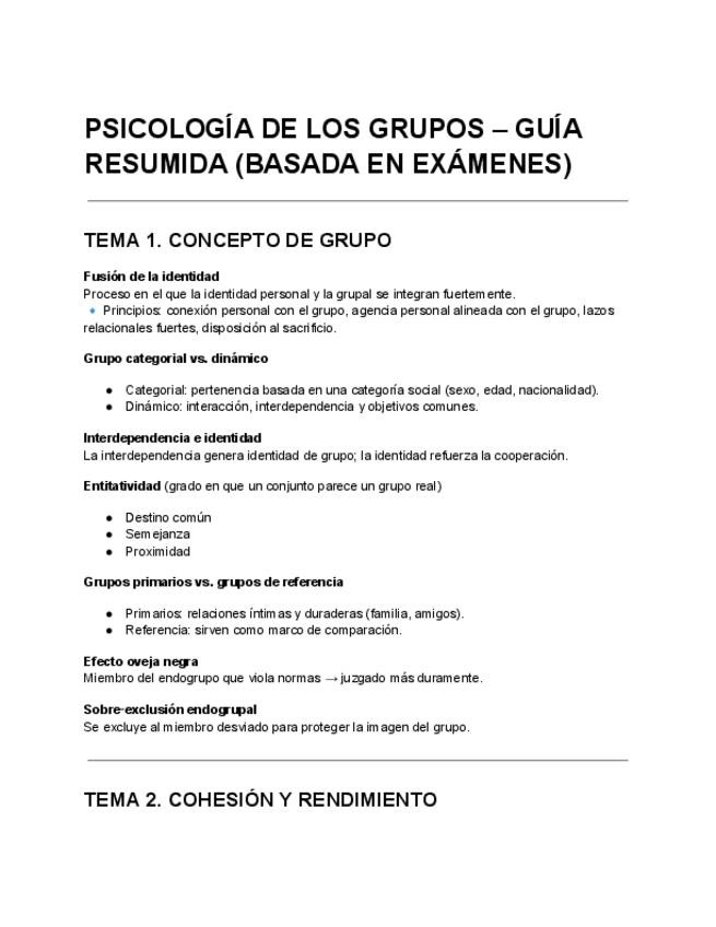 PSICOLOGÍA DE LOS GRUPOS – GUÍA RESUMIDA (BASADA EN EXÁMENES ANTERIORES)