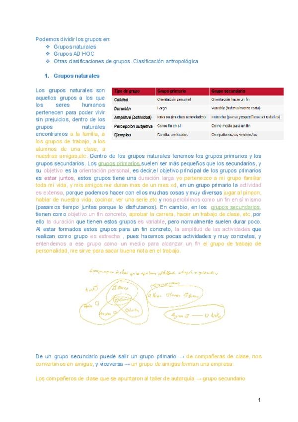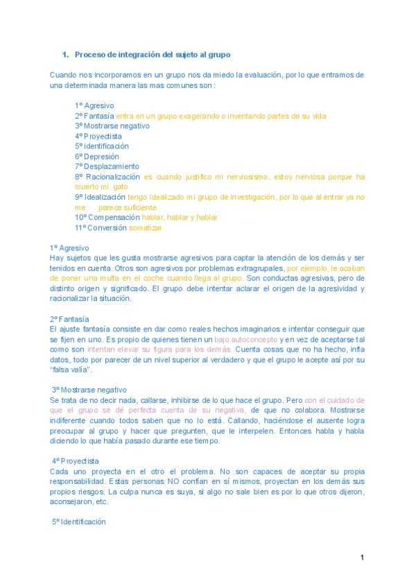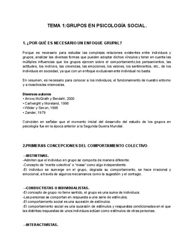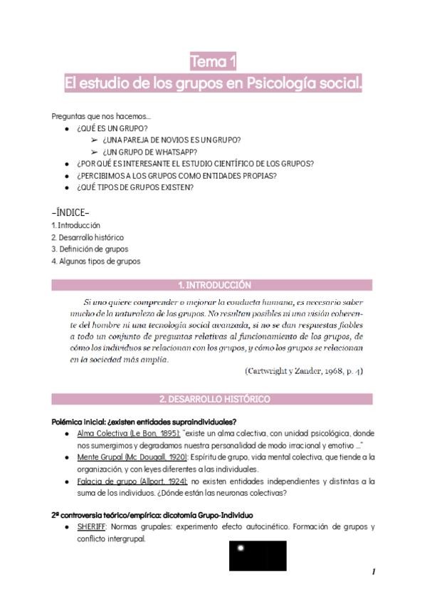 Apuntes resumidos de Psicologia de los Grupos (Tema 1) para preparar/ repasar el examen