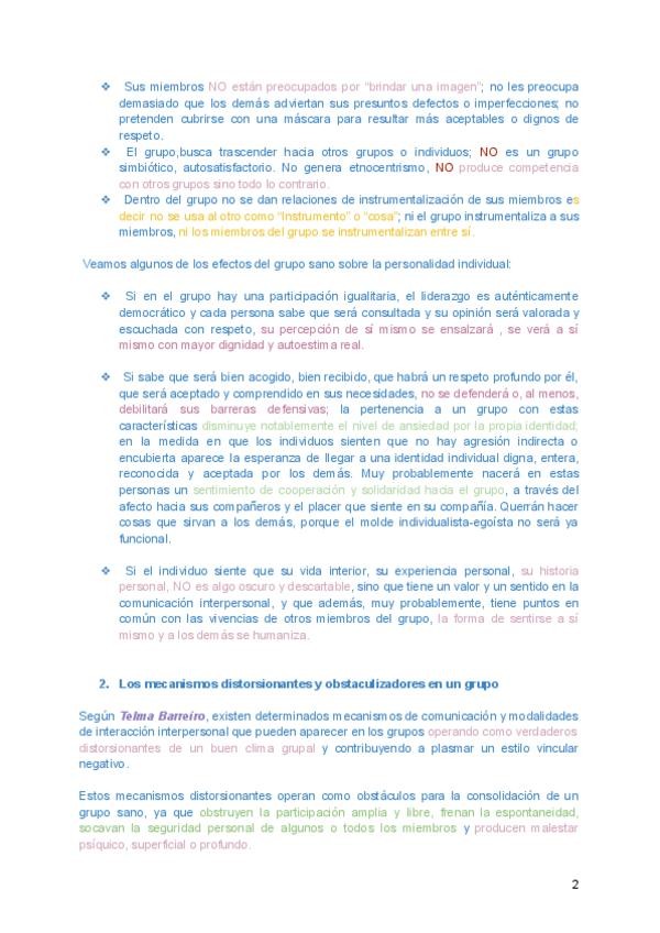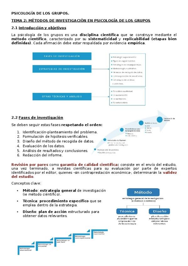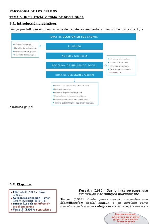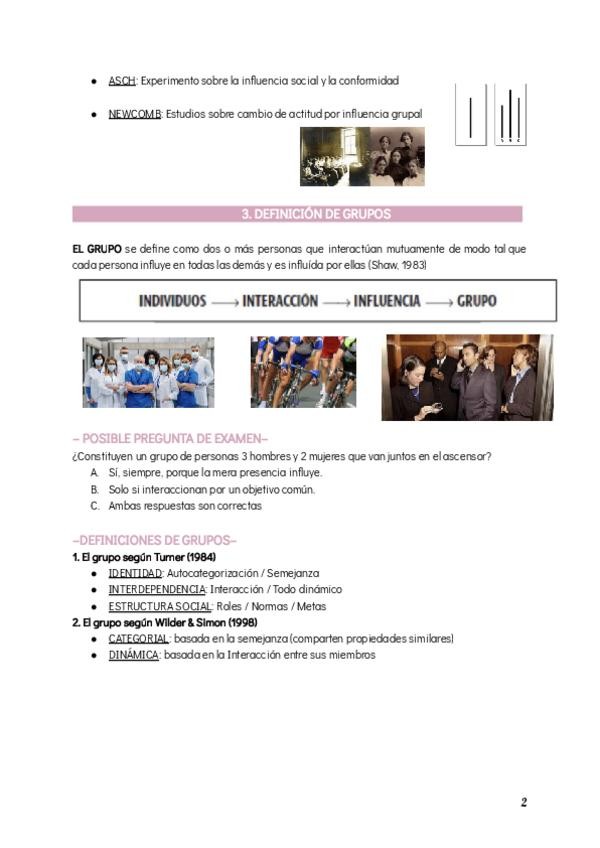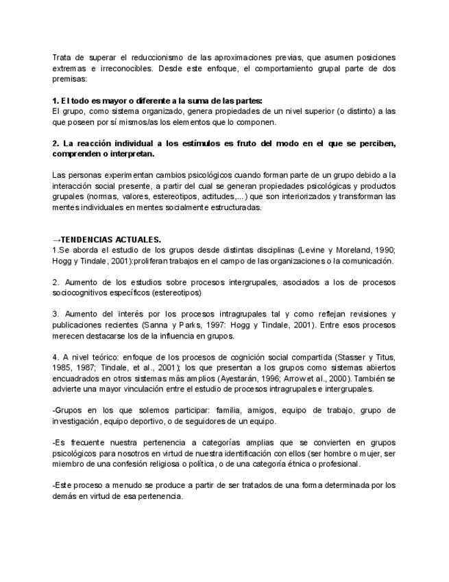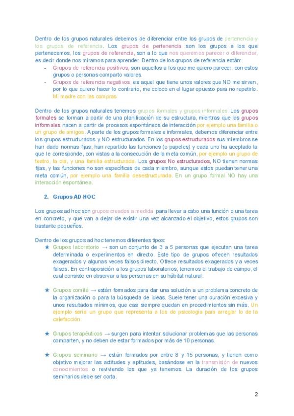 Apuntes resumidos de Psicología de los Grupos (tema 2) para preparar/ repasar el examen