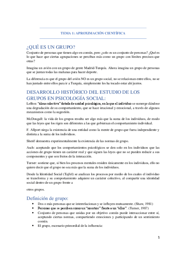 Resumen de toda la asignatura de Psicología de los Grupos y de las Organizaciones- 1er año Turismo UAM