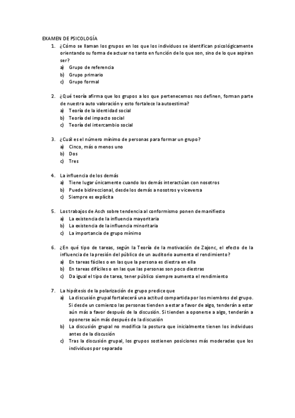 He publicado nuevos examenes de 1º Psicología de Los Grupos y de las Organizaciones: EXAMEN-DE-PSICOLOGIA.pdf
