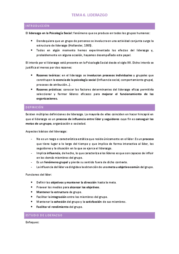 A partir del título verde empieza el TEMA 6: Liderazgo, y luego el TEMA 7: COGNICIÓN SOCIAL