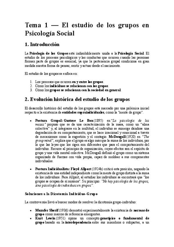 Tema 1 psicología de los grupos en modo resumen. ideas y denominaciones, no hay contenido