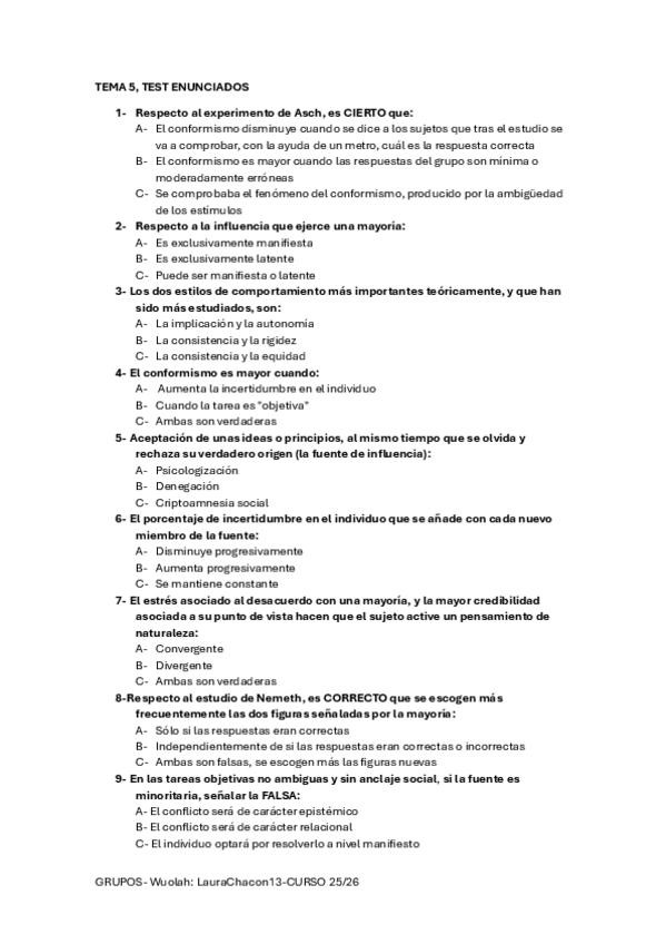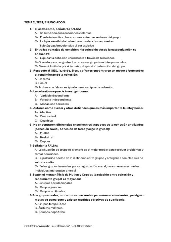 PSICOLOGÍA DE LOS GRUPOS – GUÍA RESUMIDA (BASADA EN EXÁMENES ANTERIORES)