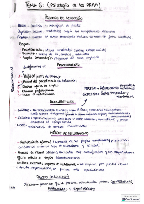 Apuntes de Psicología de los Recursos Humanos para estudiar, están todos los temas.