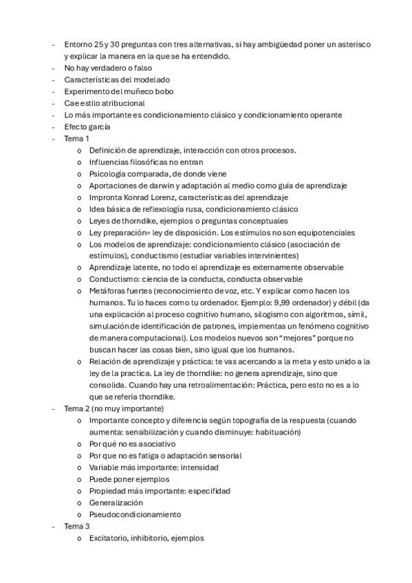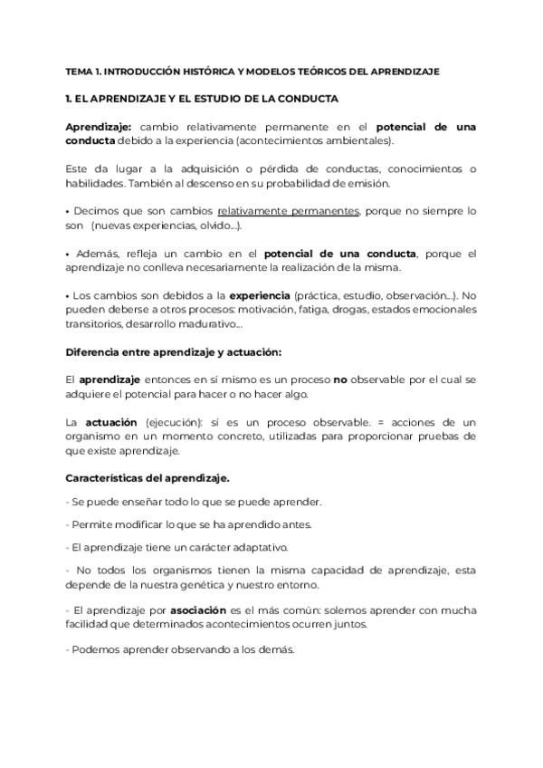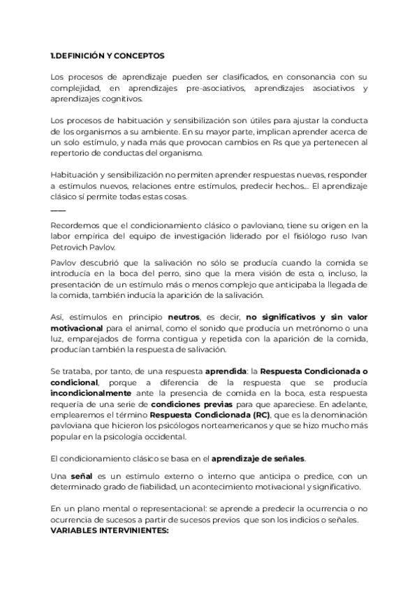 Apuntes de psicologia del aprendizaje del tema 1 al 12 según las diapositivas de Pablo Rodríguez Gómez de la URJC añadiendo la información adicional que dice en clase