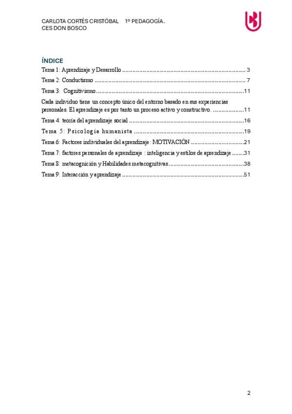 Apuntes de los temas 1, 2, 3, 4 y 5 de psicología del aprendizaje.