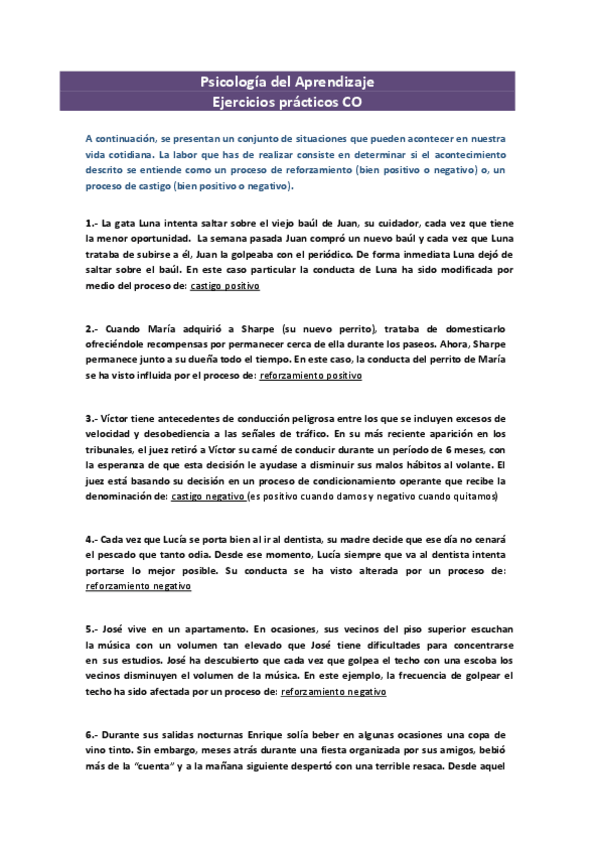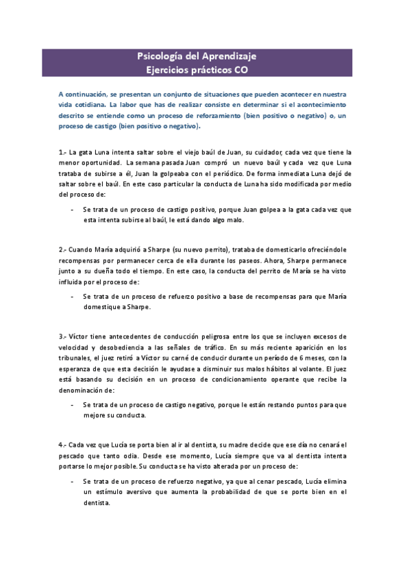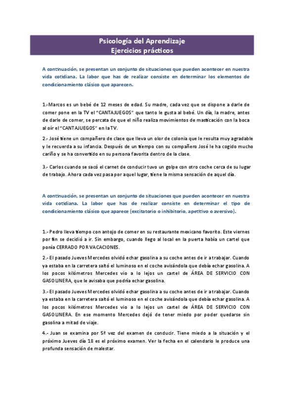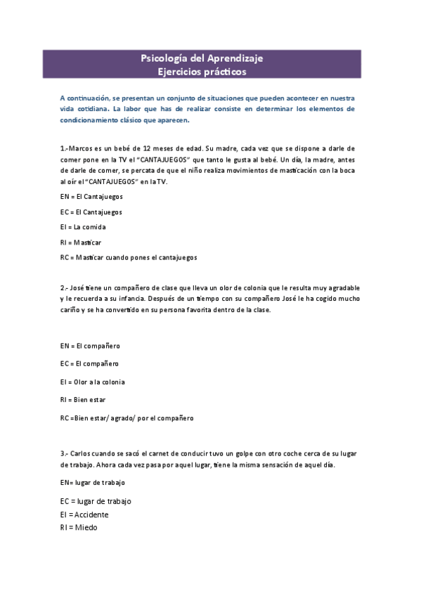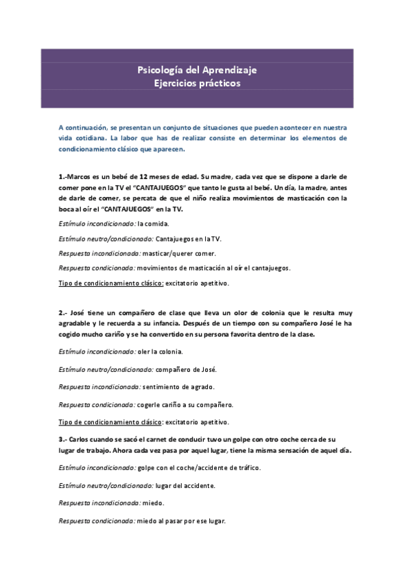 He publicado nuevos ejercicios de 1º Psicología del Aprendizaje: Aprendizaje - ejercicios y prácticas
