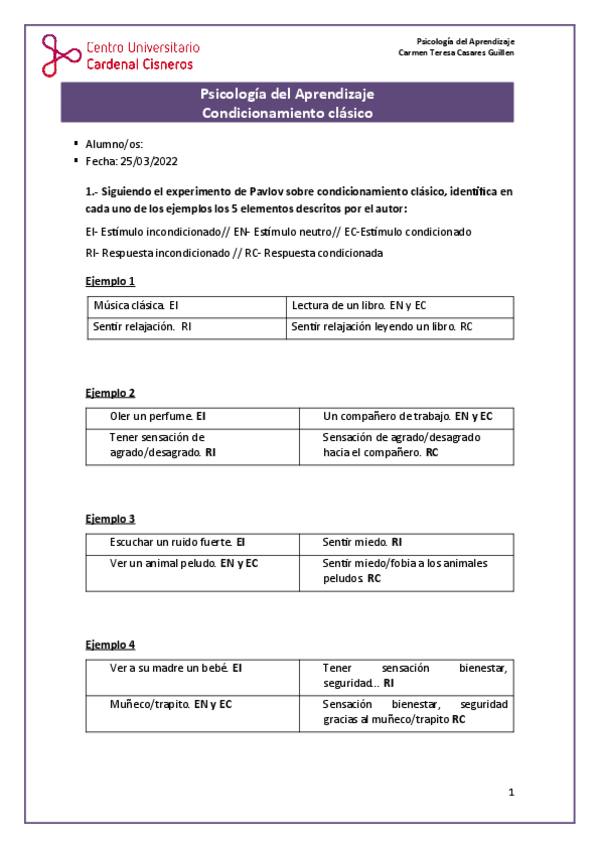 He publicado nuevos ejercicios de 1º Psicología del Aprendizaje: Actividad - Psicología del Aprendizaje