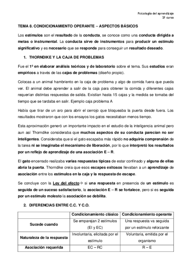He publicado nuevos apuntes de 1º Psicología del Aprendizaje: Bloque III. Condicionamiento Operante