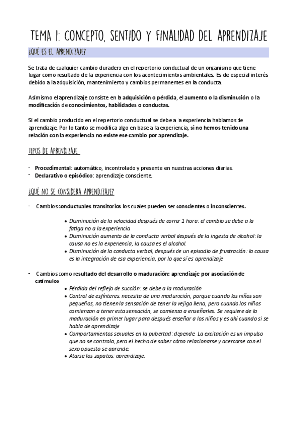 Resumen del Tema 1 de psicología del aprendizaje