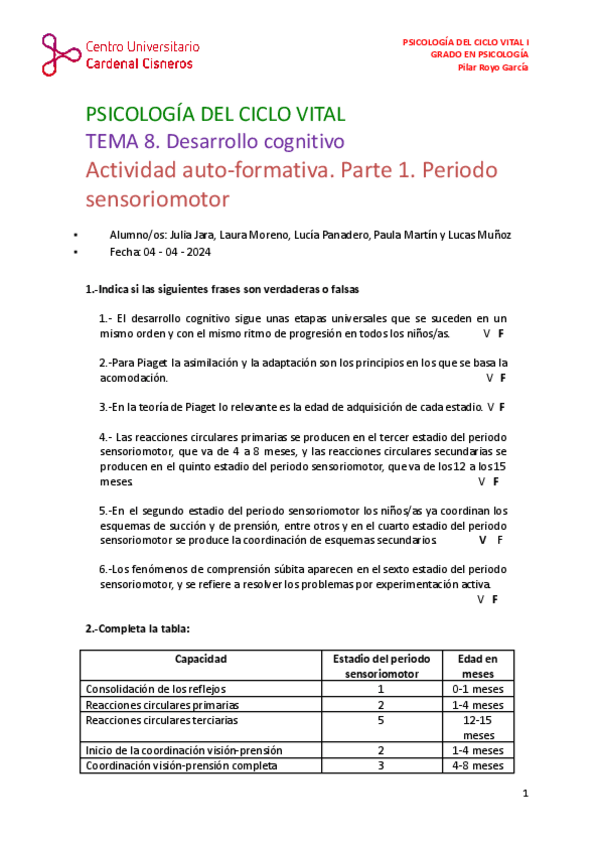 He publicado nuevos ejercicios de 1º Psicología del Ciclo Vital I: Actividades autoformativas - Ciclo Vital I