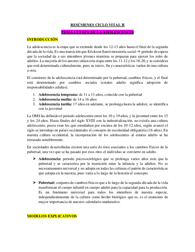 He publicado nuevos apuntes de 2º Psicología Del Ciclo Vital II: Lectura-1-Teorias-de-la-adolescencia-Resumen.pdf