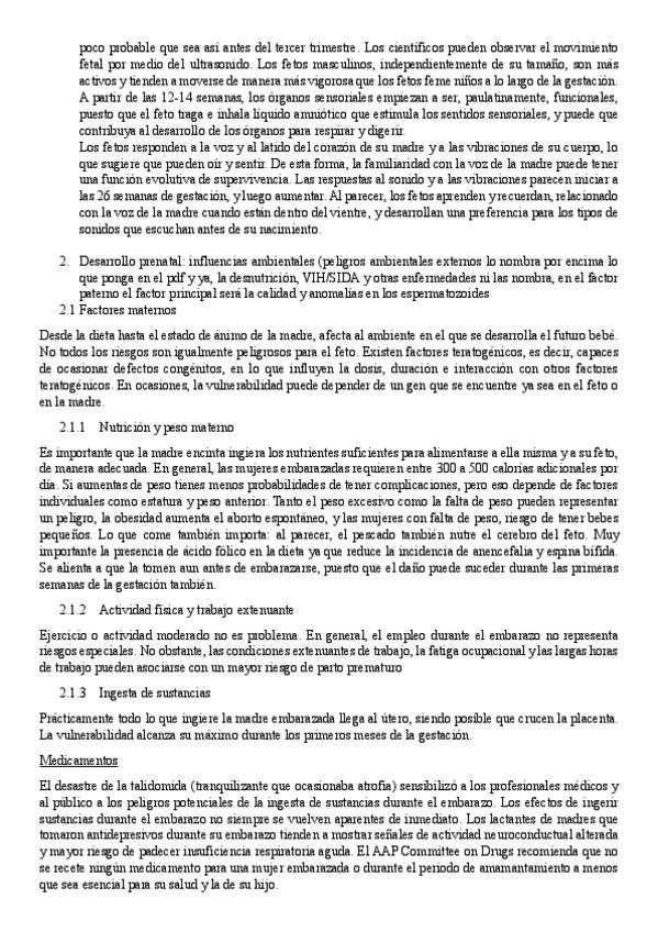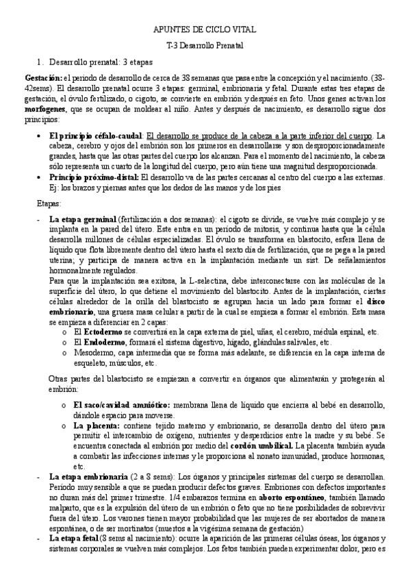 Apuntes del tema 3: desarrollo prenatal que equivalen al tema 4 y 5 del libro. Los apuntes son de lo seleccionado por él y más explicado que en su power point.