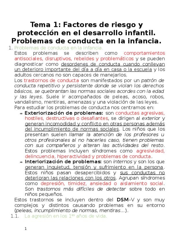 Tema 1. Factores de riesgo y protección en el desarrollo infantil. Problemas de conducta en la infancia