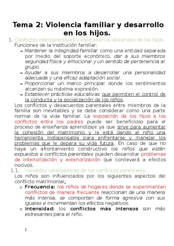 Tema 2. Violencia familiar y desarrollo en los hijos