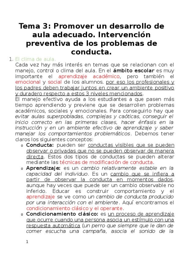 Tema 3. Promover un desarrollo de aula positivo
