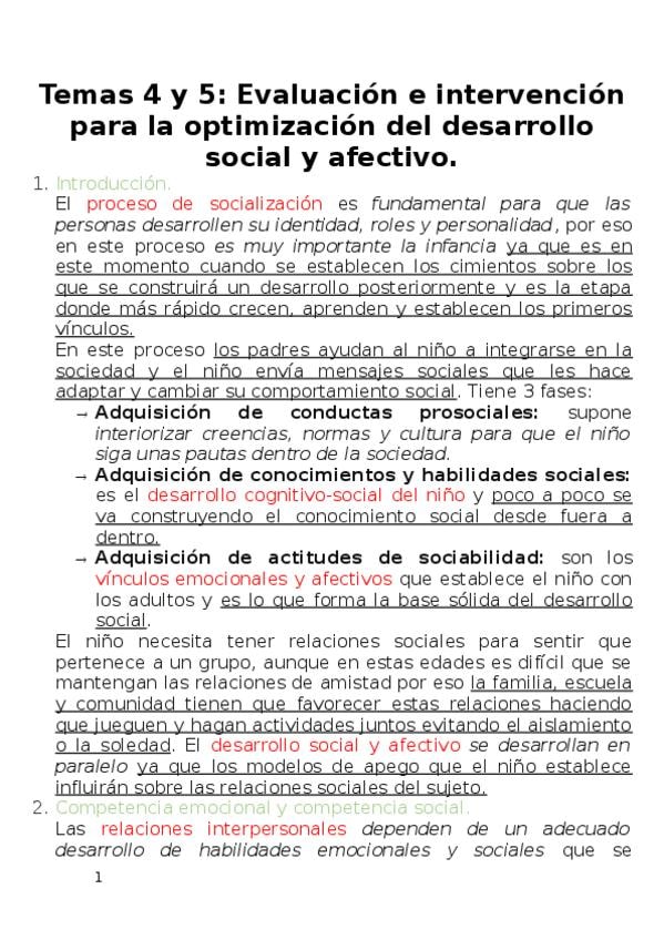 Tema 4 y 5. Evaluación e intervención para la optimización del desarrollo social y afectivo.