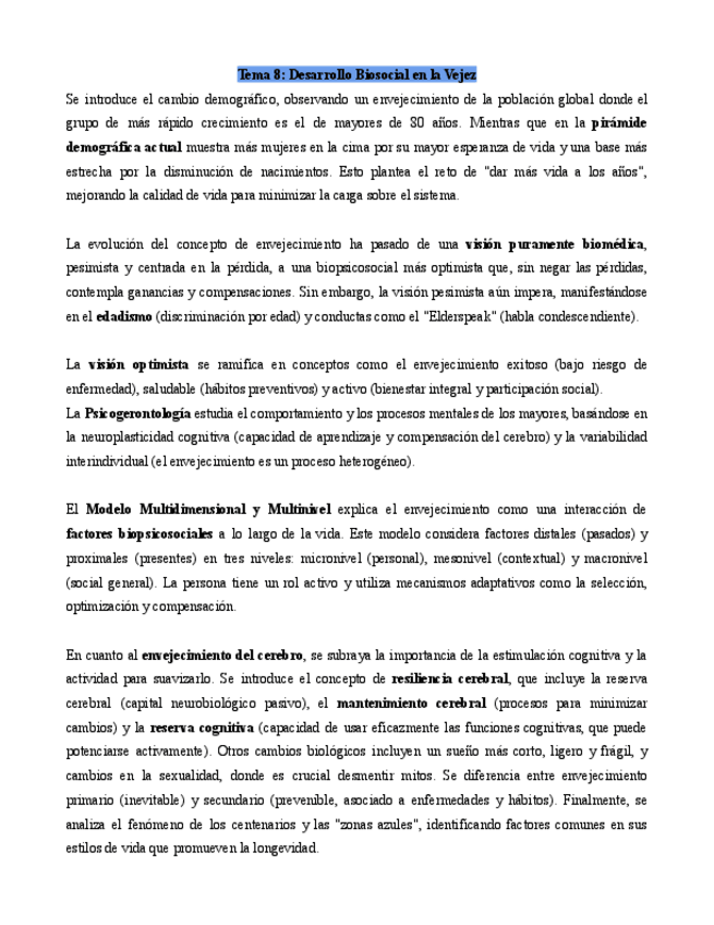 Resumen tema por tema con tablas y glosarios al final. Temas 8, 9, 10 y 11 para el segundo parcial de psicología del desarrollo del adulto y senescente