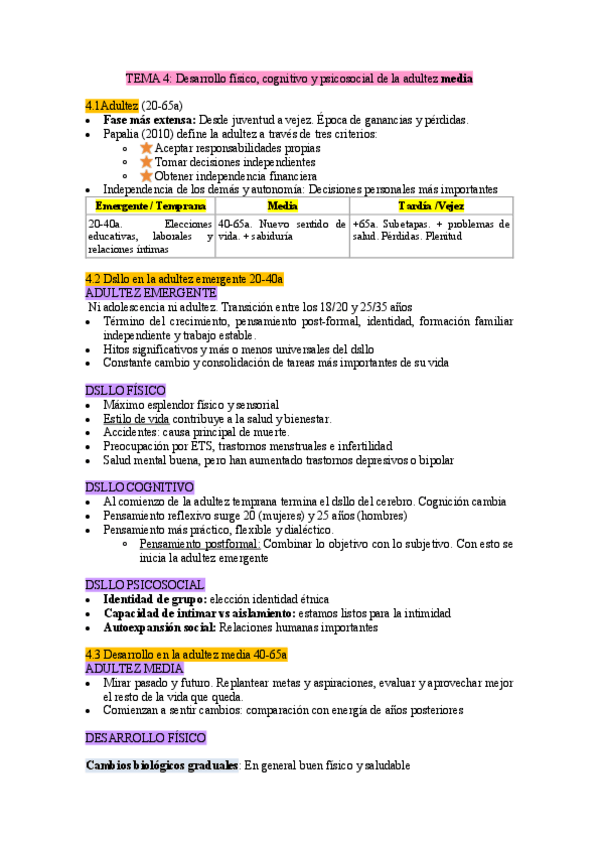 Apuntes desarrollo edad adulta y vejez