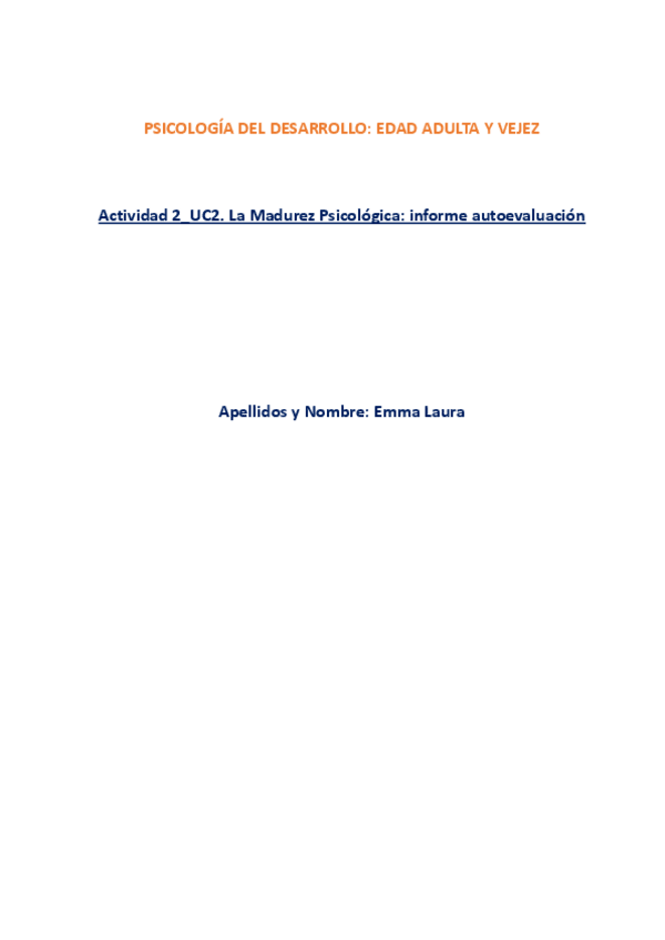 He publicado nuevos ejercicios de 1º Psicología del Desarrollo. Edad Adulta y Vejez: 2.-Actividad-2UC2.-La-Madurez-Psicologica-informe-de-autoevaluacion1.pdf