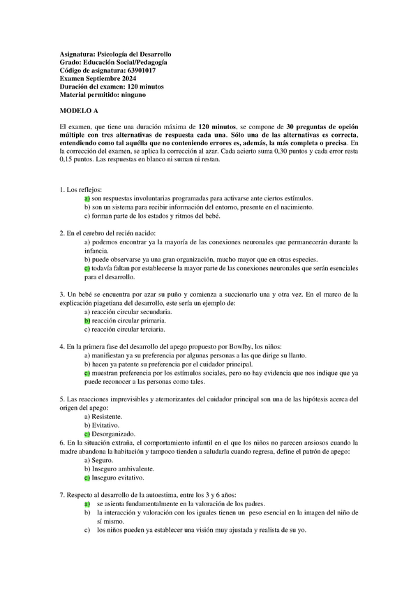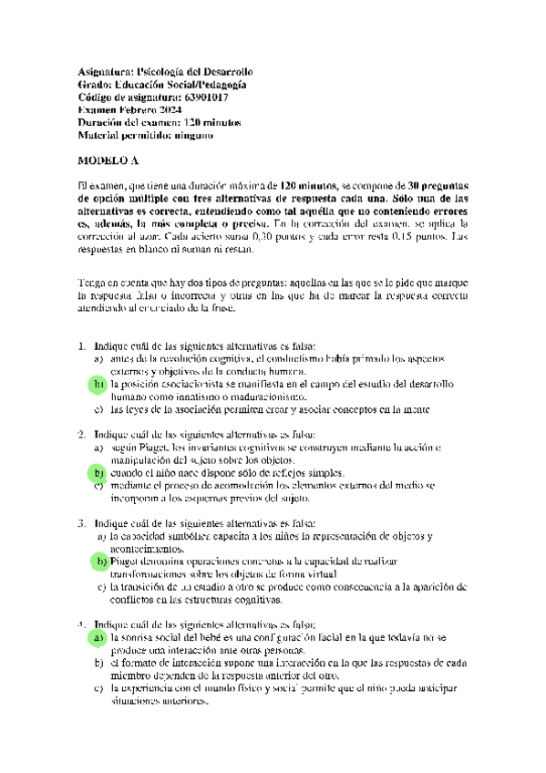 EXAMENES RESUELTOS AÑO 2023-2024 PSICOLOGÍA DEL DESARROLLO