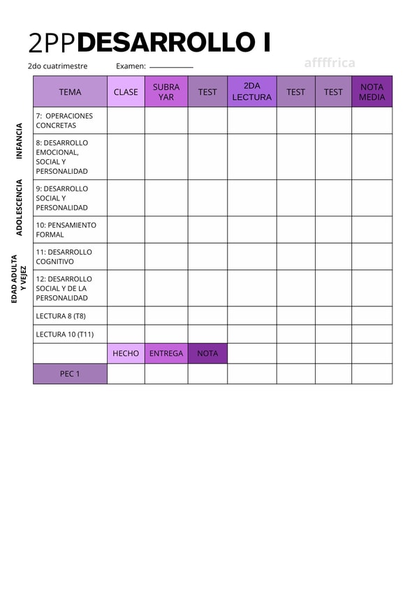 Os comparto algunas plantillas para ir rellenando comforme avanzamos el estudio de la asignatura Desarrollo (segundo cuatri). UNED.