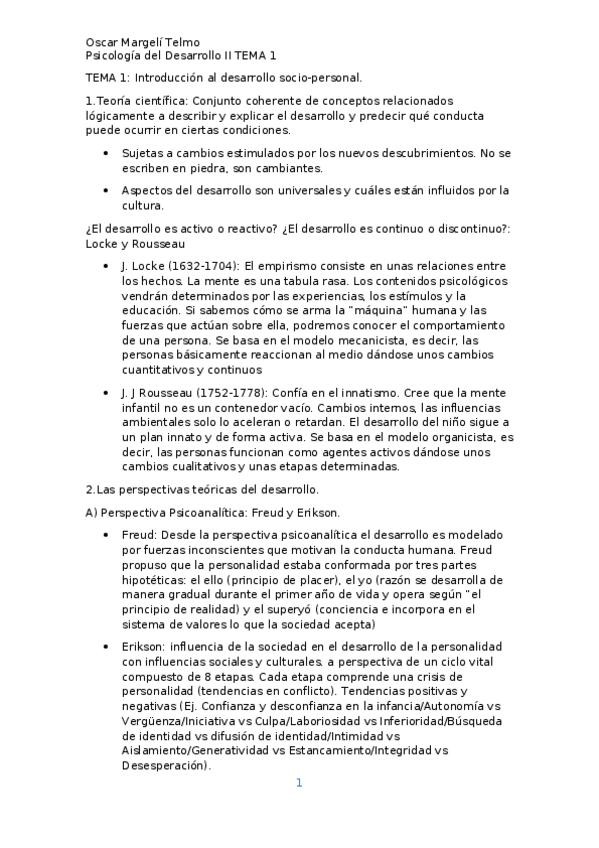 Apuntes Psicología del Desarrollo II
