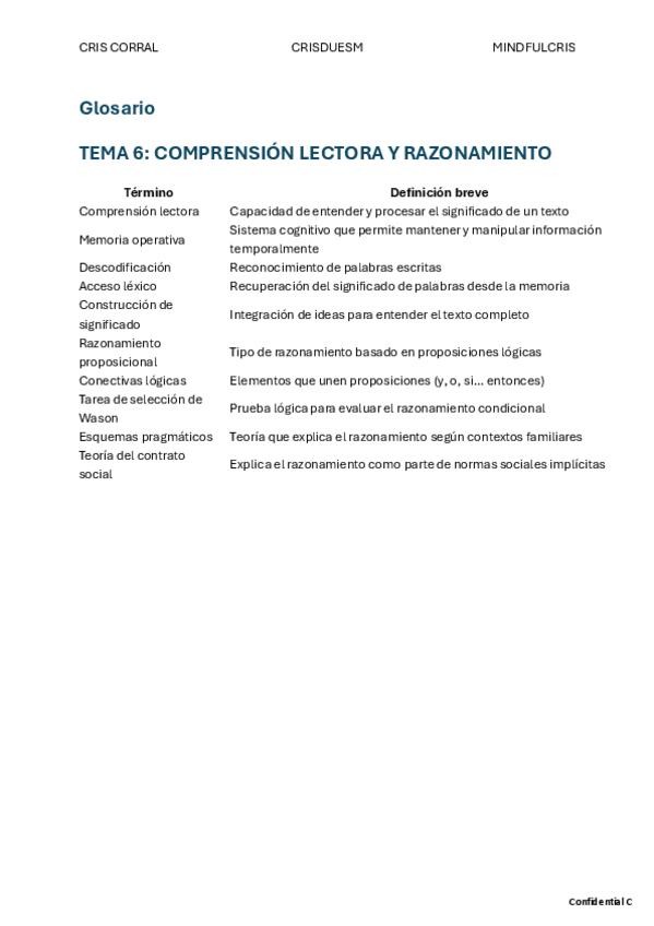 Es un glosario/resumen de toda la asignatura ordenado por orden de aparición en el texto.