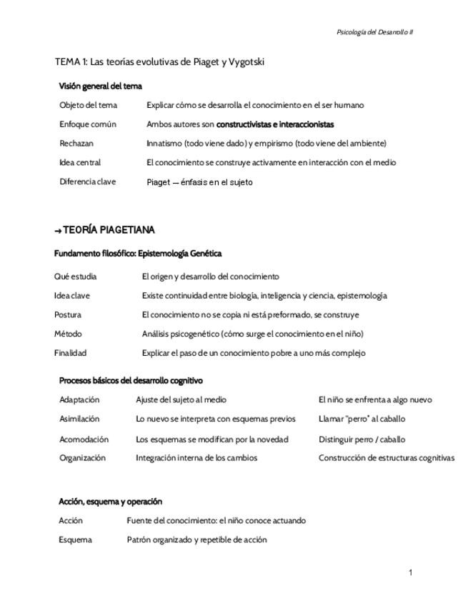 Resumen-esquema Psicología del Desarrollo II basado en apuntes Dolores de la Torre