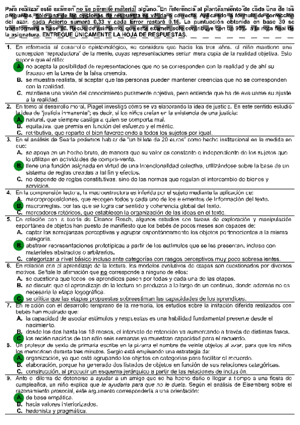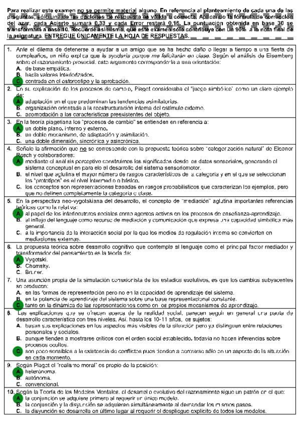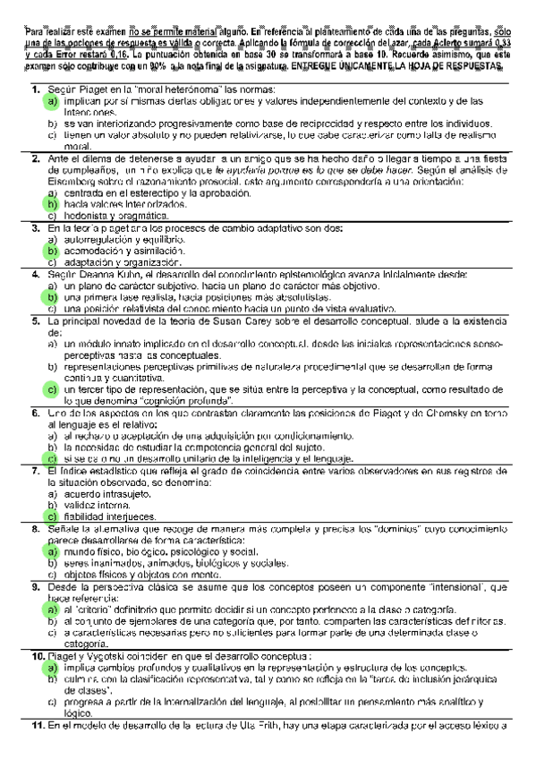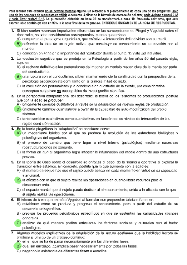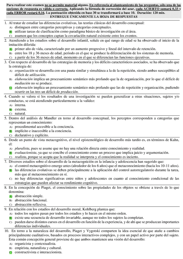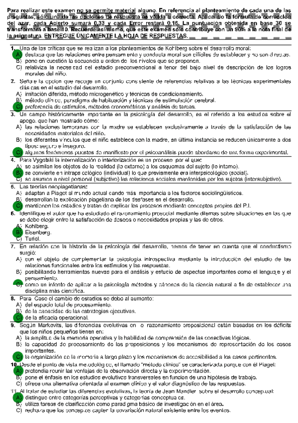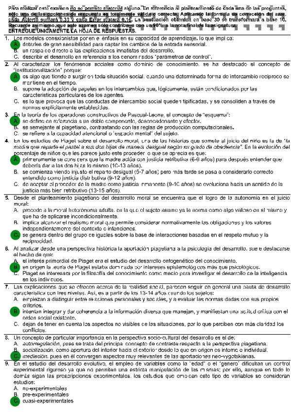 Todas las autoevaluaciones de P. del Desarrollo II correspondientes al campus virtual. Soluciones al final del archivo.