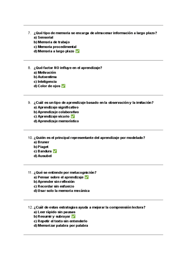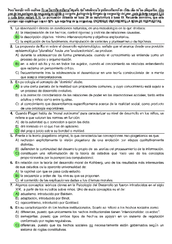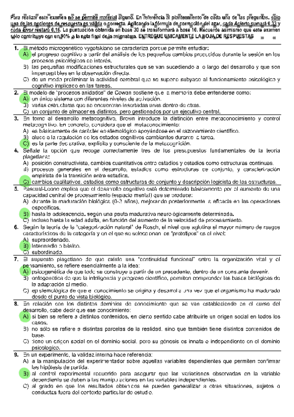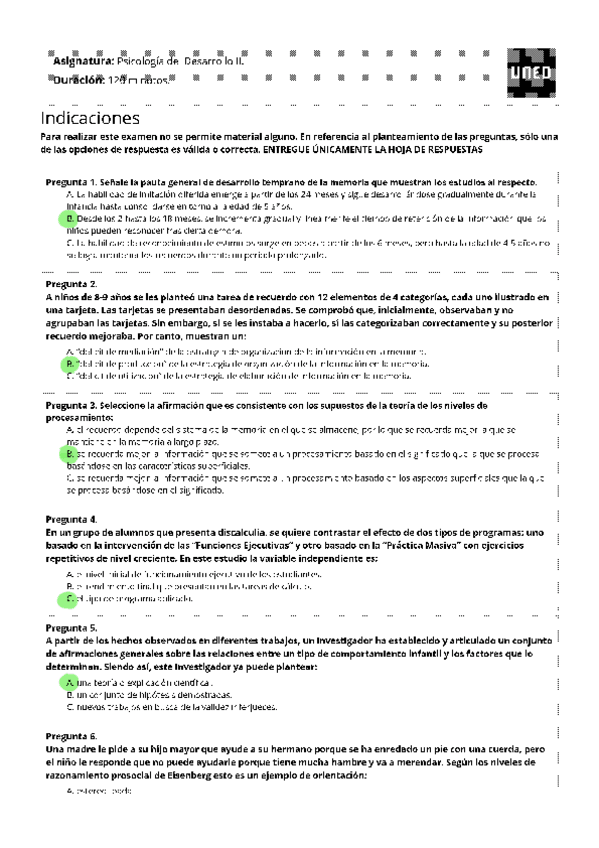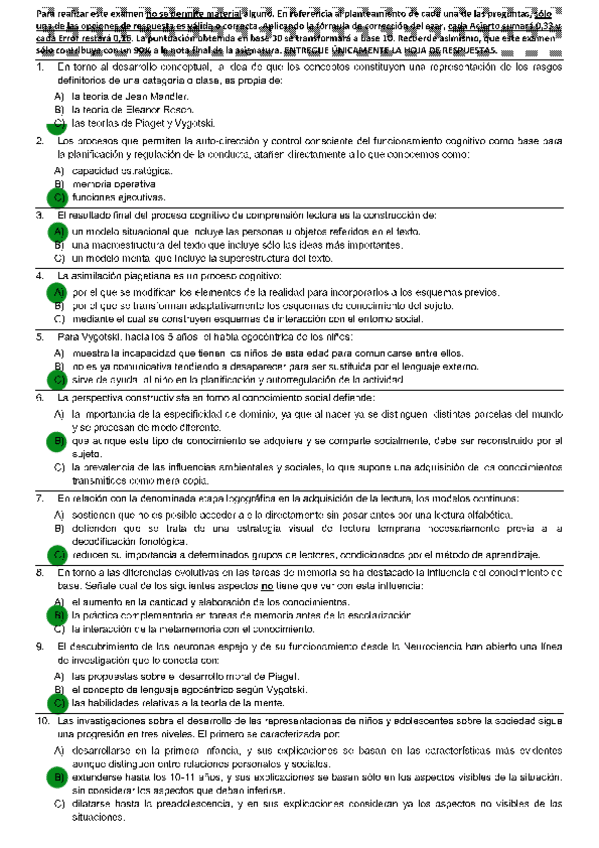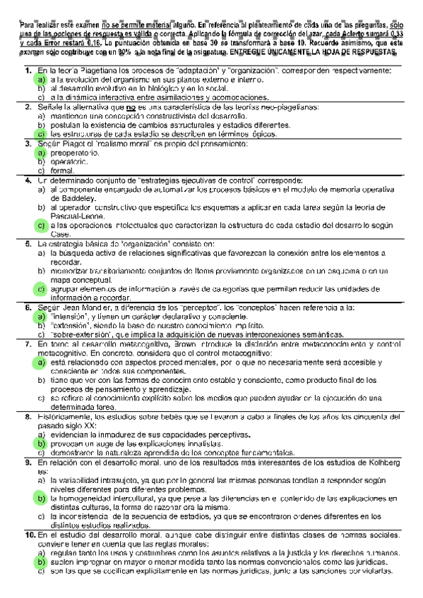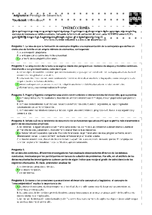 Todas las autoevaluaciones de P. del Desarrollo II correspondientes al campus virtual. Soluciones al final del archivo.
