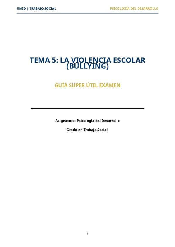 He publicado nuevos apuntes de 1º Psicología del Desarrollo (Trabajo Social): TEMA-5-LA-VIOLENCIA-ESCOLAR-BULLYING-GUIA-SUPER-UTIL-EXAMEN.pdf