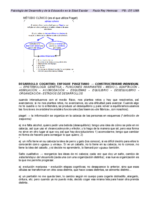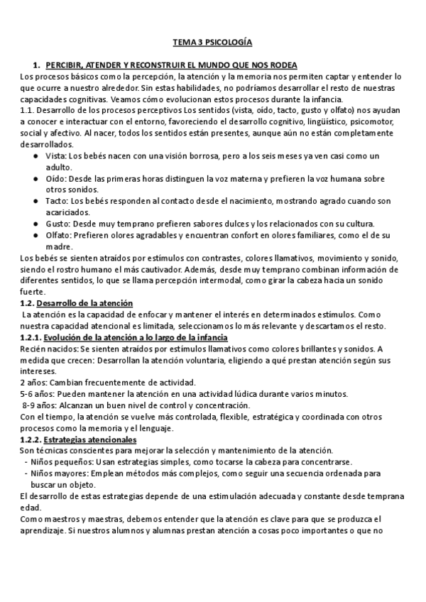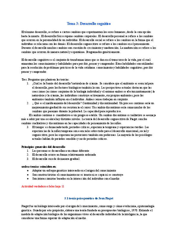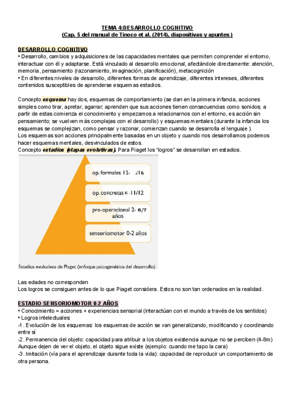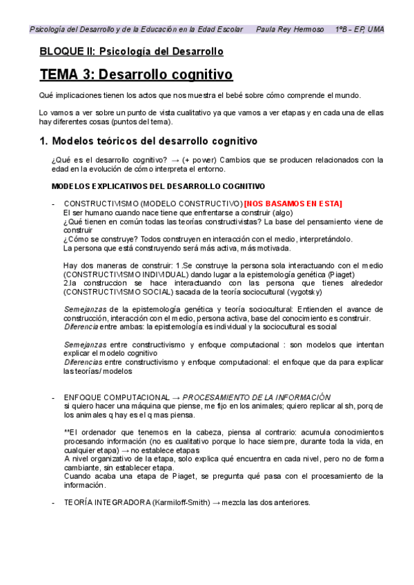 BLOQUE 2. TEMA 3 - Desarrollo cognitivo. No es resumen del tema completo, sino apuntes tomados durante las explicaciones de clase.