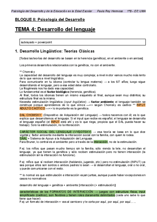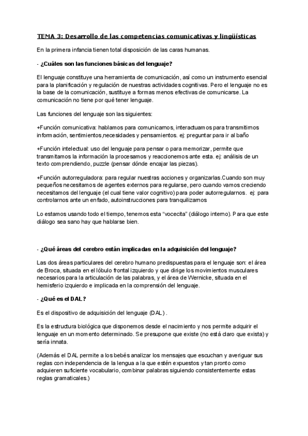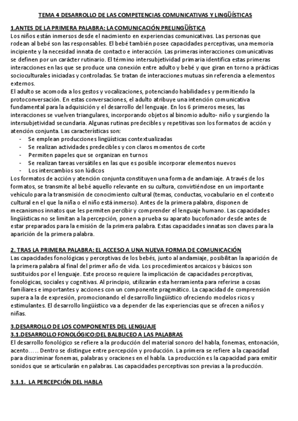 BLOQUE 2. TEMA 4 - Desarrollo del lenguaje. No es resumen del tema completo, sino apuntes tomados durante las explicaciones de clase.