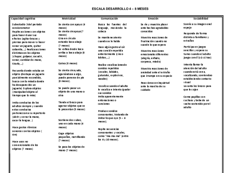 Escala del desarrollo humano desde 1-48 meses, en capacidad cognitiva, motricidad, comunicación, emoción y sociabilidad.