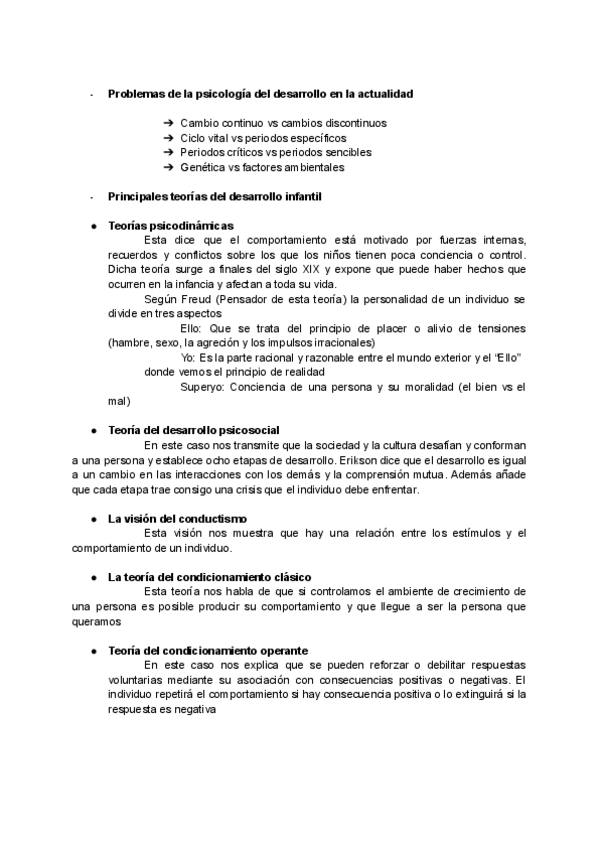 Cosas importantes de cada tema de psicología del desarrollo para la profesora Maria dolores Justicia Diaz
