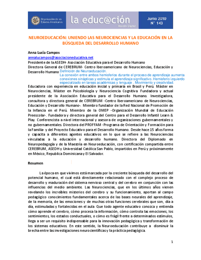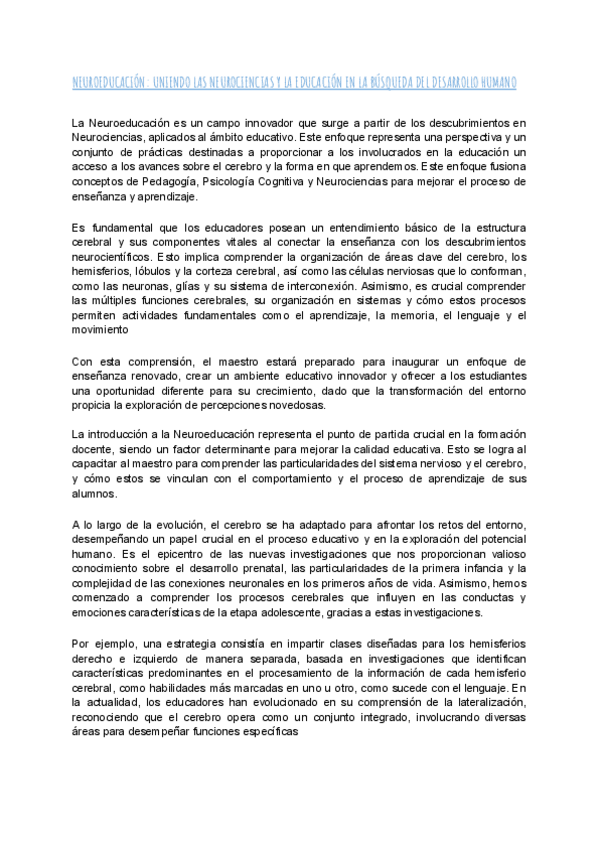 Psicologia del desarrollo articulo neuroeducacion resumido