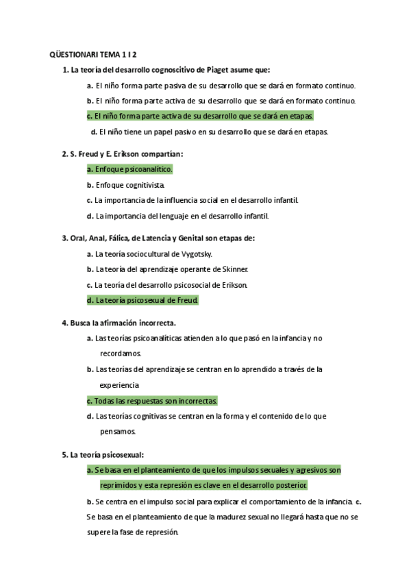 PREGUNTES QÜESTIONARIS PSICOLOGIA DEL DESENVOLUPAMENT